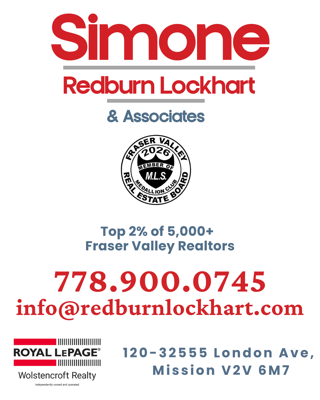 With 16 years' experience servicing the Fraser Valley & Lower Mainland, Simone is a veteran real estate professional whose team consistently achieves Medallion Club membership, awarded annually to the Top 10% of Fraser Valley Realtors.